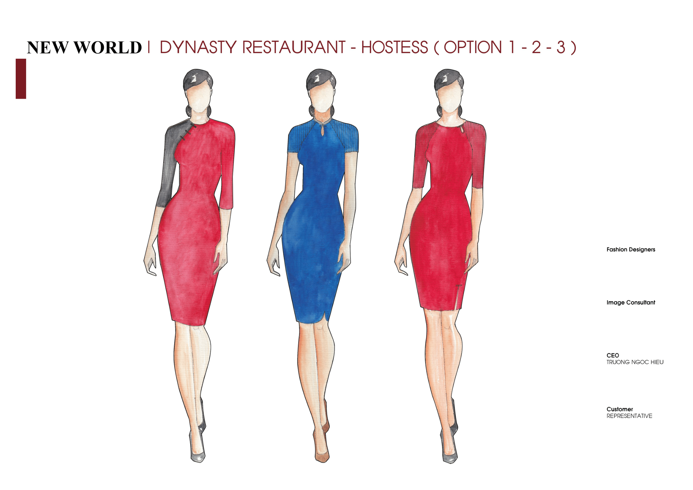 Option 3 is designed to stand out in red. The female staff’s shirt is buttoned on one side, similar to a Chinese dress.